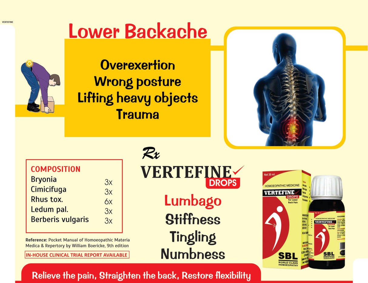 Vertefini. SBL > এই ওষুধটি, কোমর ব্যথা, মেরুদন্ড ব্যথা, জন্য অত্যন্ত কার্যকারী মেডিসিন কোন পার্শ্ব প্রতিক্রিয়া নেই। হোমিও ঔষধ